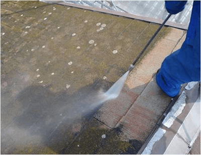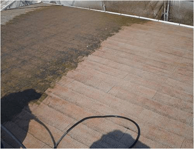 建物の屋根・外壁の塗り替えの場合は、長年の汚れ、苔、カビ等が付着しています。きちんと除去せずに塗装すると、塗膜の剥がれを引き起こします。こうならないためにペイントホームズでは120~150Kgの高圧ジェット洗浄を行っています。汚れ、苔、カビをしっかり除去してから塗装をするから長持ちをお約束することができるのです。