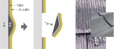 屋根や外壁の塗装を始める前に脆弱塗膜剥離というものがあります。既存の脆弱塗膜剥離の目的は、建物の躯体表面の美観のために塗装するだけでなく,躯体自身を保護する目的で行われます。脆弱塗膜の上に塗装しても、後々に、脆弱塗膜から剥がれてきますので塗装する意味がありません。既存塗膜を完全に除去して再塗装を行うのが最良となります。既存の脆弱塗膜を除去することは不可欠であり,それが重要となります。戸建住宅やアパートの再塗装では、屋根が特に脆弱塗膜剥離を起こしていることが多く、この原因の多くは、前業者の手抜き工事によるものが多いです。既存塗膜の調査既存塗膜を調査する方法としては,引張試験,打診検査,赤外線確認で行います。