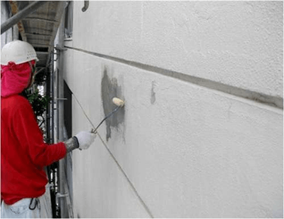 ヘアークラック(髪の毛ほどの幅の細くて浅いひび割れのこと)を補修する場合は、下塗り塗料をひび割れの中に刷り込み、その上から上塗り塗料を重ね塗りします。そうすることで、均一な塗装面へ仕上げます。